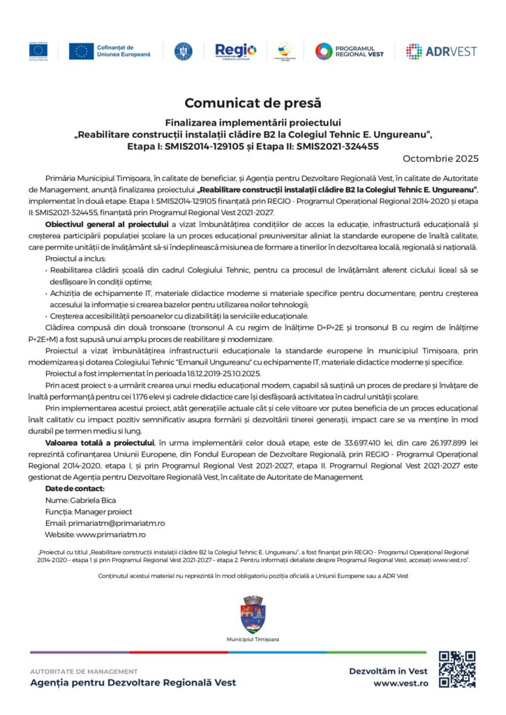 De joi dimineață până sâmbătă seară, vremea va fi deosebit de rece cu ploi importante cantitativ, intensificări ale vântului și ninsori viscolite la altitudini de […]